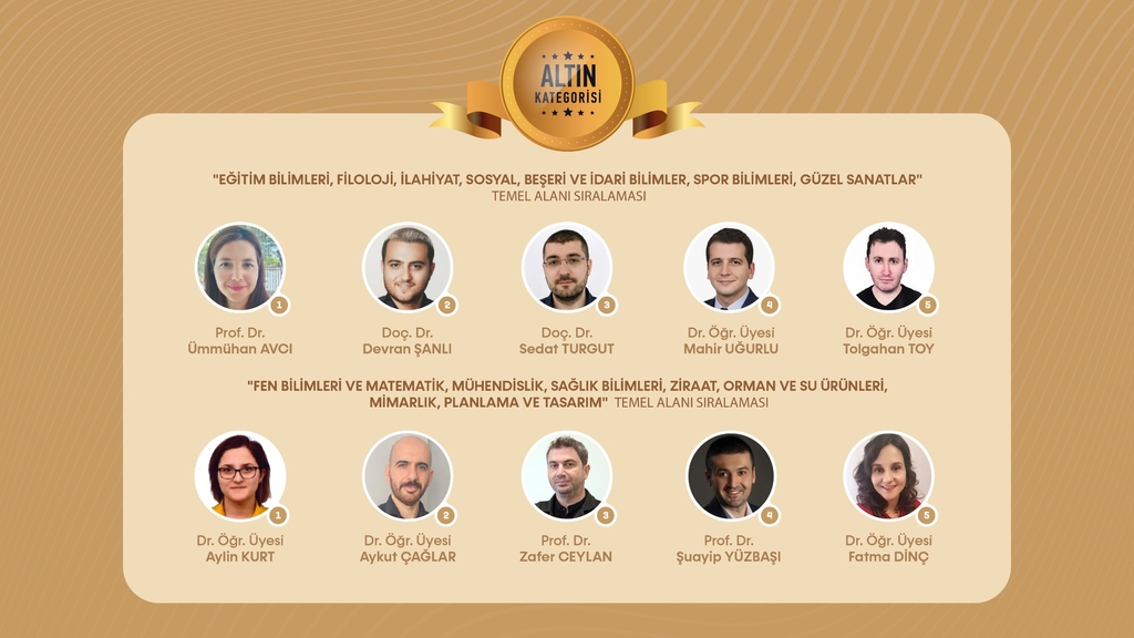“Akademik Performans Ödül Töreni” ile devam eden programda, 2024 yılı içerisinde uluslararası saygın dizinlerde taranan dergilerde en fazla yayın yapan öğretim elemanları sahneye davet edildi. Nitelikli bilimsel çalışmaları ve araştırma performanslarıyla öne çıkan akademisyenler; Eğitim Bilimleri, Filoloji, İlahiyat, Sosyal, Beşeri ve İdari Bilimler, Spor Bilimleri ve Güzel Sanatlar temel alanları ile Fen Bilimleri ve Matematik, Mühendislik, Sağlık Bilimleri, Ziraat, Orman ve Su Ürünleri, Mimarlık, Planlama ve Tasarım temel alanlarında değerlendirildi.