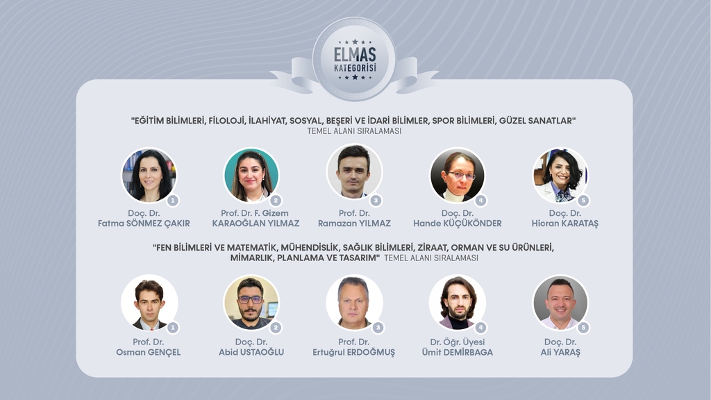 “Elmas”, “Altın”, “Gümüş” ve “Bronz” olmak üzere dört farklı kategoride başarılı bulunan 58 akademisyen sahnede tebrik edilerek başarı belgeleri verildi. Son olarak 2024 yılı içerisinde kurum dışı fonlar tarafından desteklenen projelerde yürütücülük yapan ve fikirden ürüne uzanan süreçte çalışmaları tescillenerek patente dönüşen öğretim elemanları “Proje ve İnovasyon” kategorilerinde başarı belgelerini aldı.